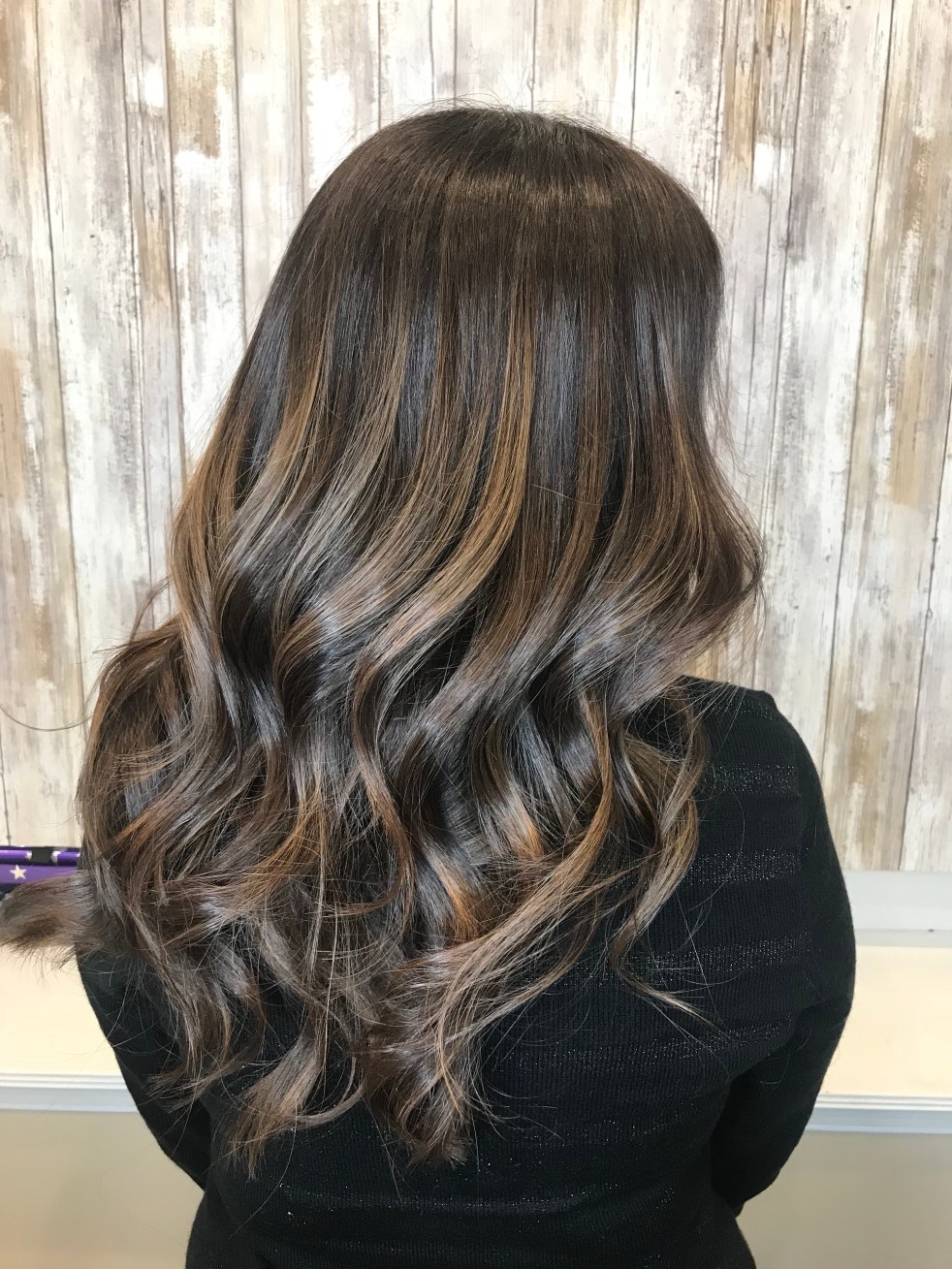 Balayage is applied with a brush to hair with more saturation at the ends and becoming softer at the root. Ends naturally lighten from the sun so this keeps it looking natural. There is no foil involved with traditional balayage, therefor, minimal “lift” meaning more of a natural look. It’s suppose to mimic what the sun would do. Putting your hair in a foil allows the bleach to work it’s best, both by keeping it warm and wet. When your hair is out of a foil, it dries faster and doesn’t get much heat. That’s why with traditional balayage, you can only expect about 2-3 levels of lift on average. Which means if you come in with a level 5 natural base, you WILL NOT be a bright ashy blonde on your ends. That’s not what balayage was created for anyway…. There are some great tools out now like foam foils or plastic wrap specially made for hair to keep the heat in, but it’s still not “traditional” balayage and is more work. This picture below is a traditional balayage.